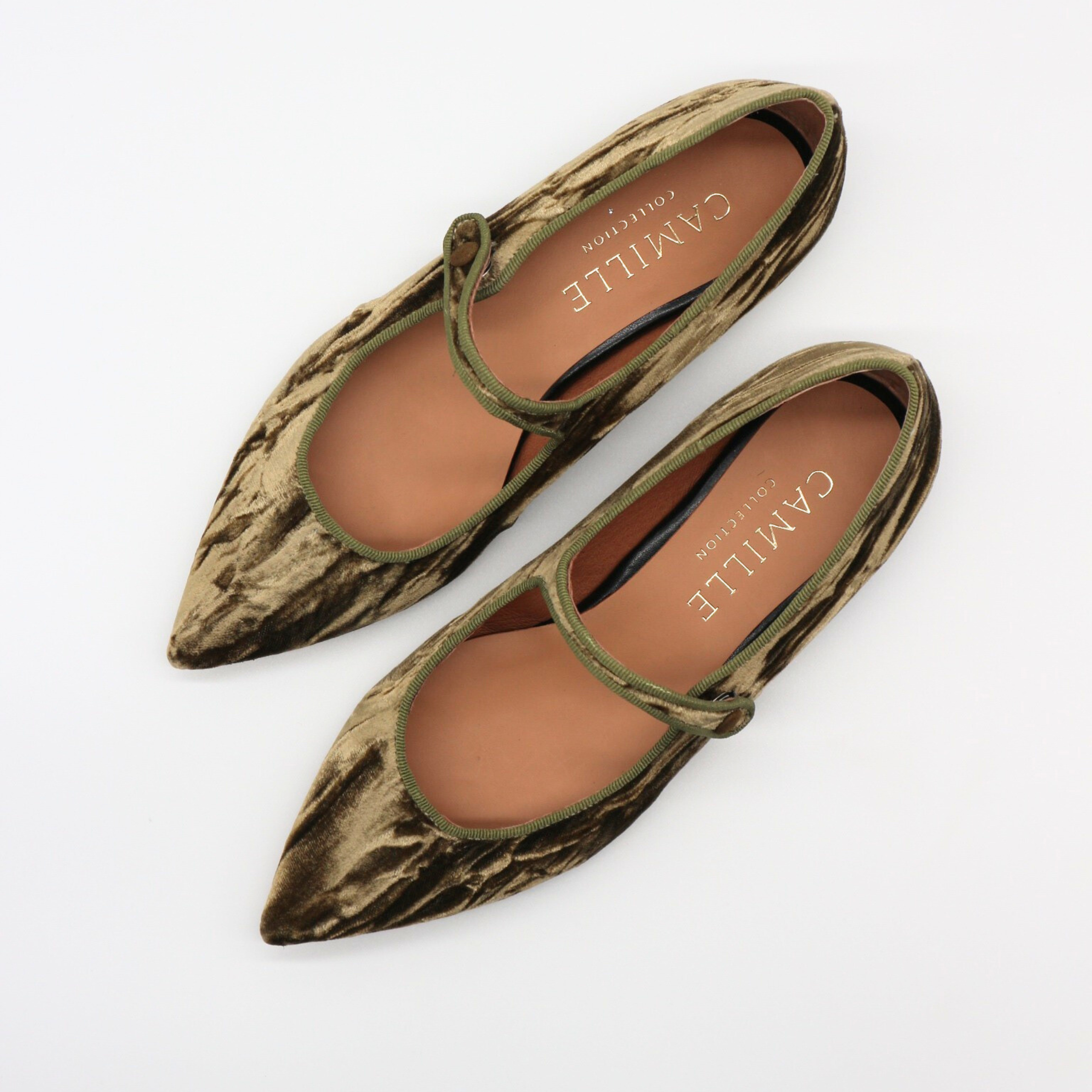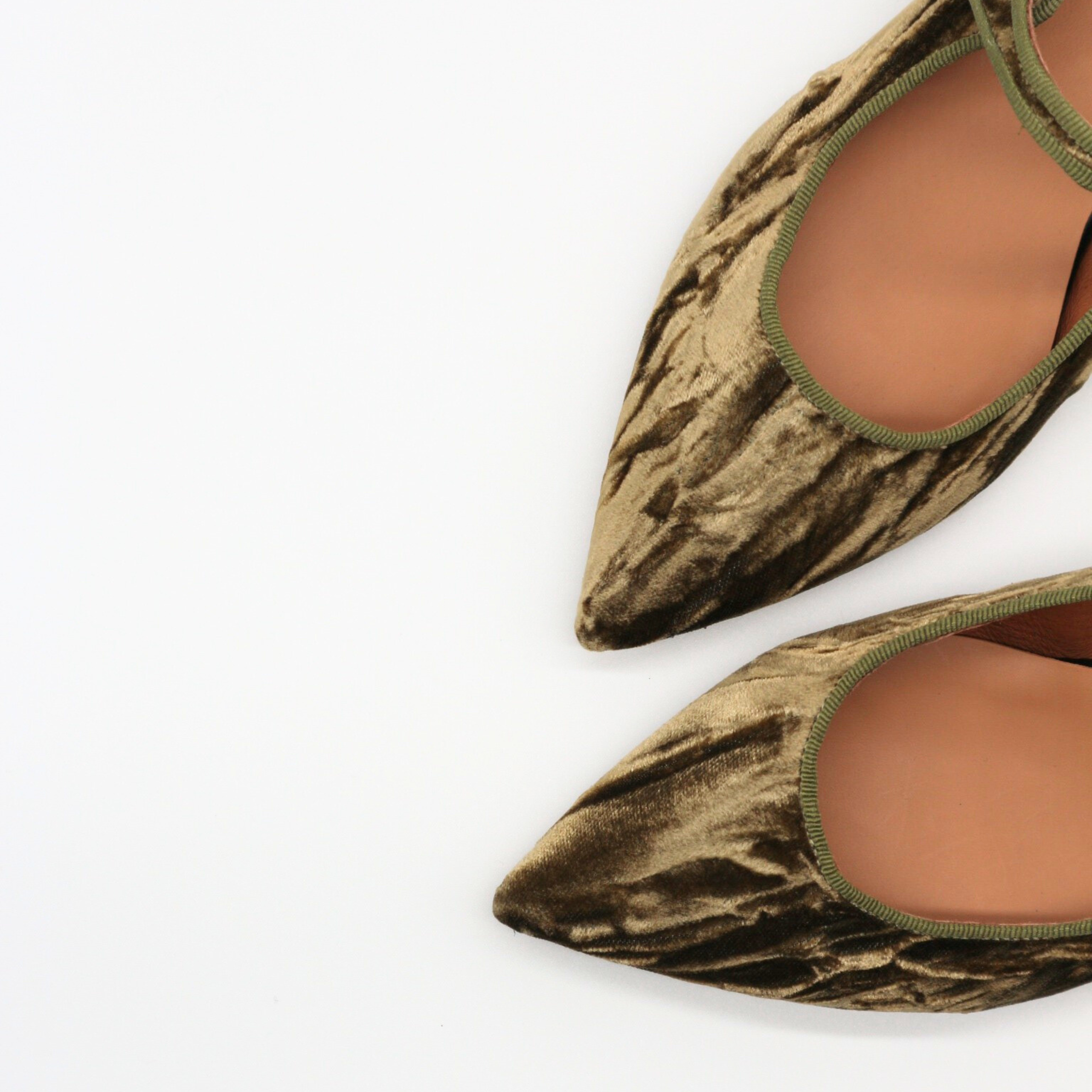 Mercedita de suave terciopelo que hace aguas color verde olive